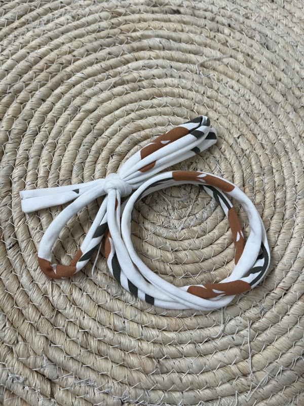 Haarstrikbandje | BLOEM CAMELDe haarstrikbandjes hebben ongeveer een lengte van 125 cm lang zodat je ze 1 of 2 keer om het hoofdje kan knopen en zelf kan strikken. Mocht je hem te lang vinden dan kan je ze zelf op maat knippen. De strikbandjes zijn ook…